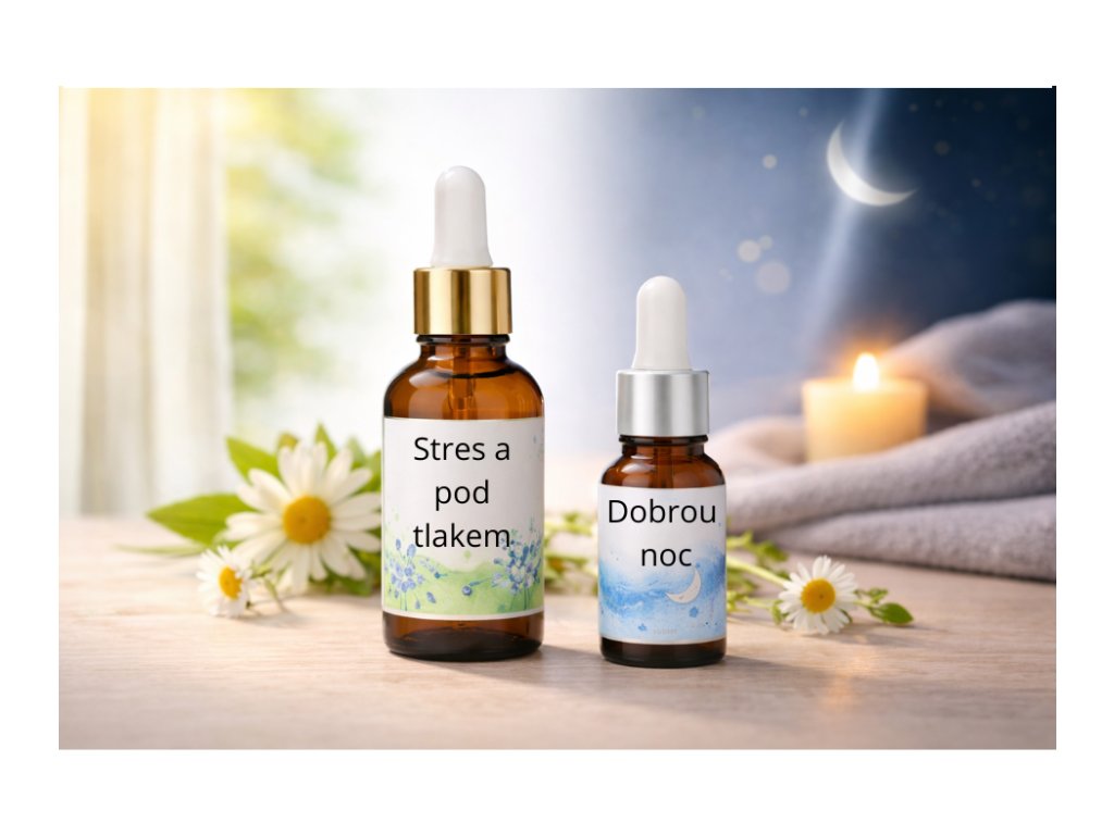 Tato kombinace směsí dává smysl ve chvíli, kdy jste dlouhodobě pod tlakem a tělo už neumí samo přepnout do klidu. Přes den pomáhá uvolnit vnitřní napětí a přetlak v hlavě, večer pak podpoří zklidnění a přirozené usínání.